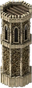 Para construir torretas en los castillos de aldeas y capitales, es preciso tener un Fabricante de torretas de nivel 1 en la capital de la parroquia. El número de torretas que se pueden colocar se puede aumentar mejorando al fabricante de torretas. Las Torretas tienen un tamaño de 2x2 casillas. |