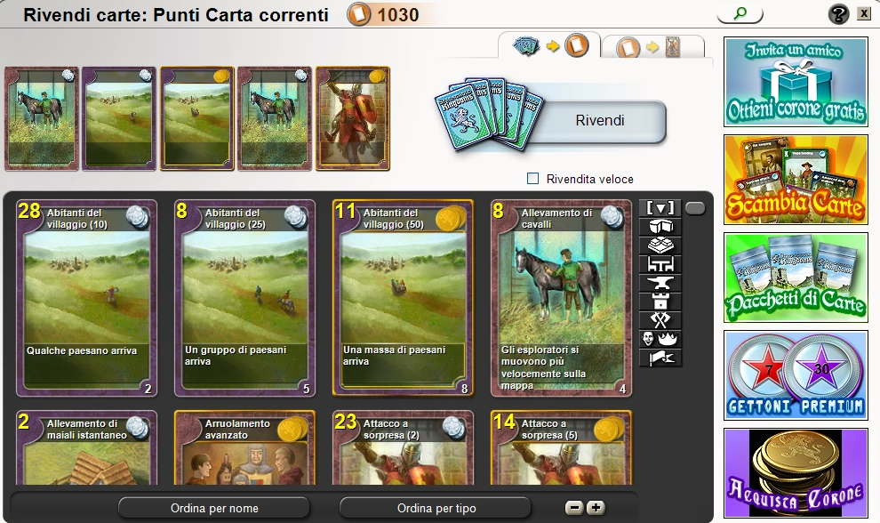 | Pacchetto Difesa | 10 corone | Cinque (5) carte che hanno effetto sulle difese. |
